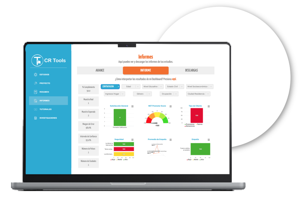 Convierte las respuestas de tus clientes en insights valiosos que satisfacen las necesidades de tu negocio, permitiéndote tomar decisiones informadas y estratégicas.